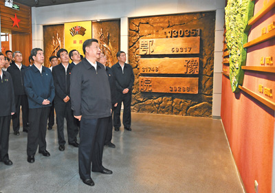 接着,习近平来到鄂豫皖苏区首府革命博物馆,了解鄂豫皖苏区的革命历史。鄂豫皖苏区是中国共产党在土地革命战争时期领导创建的根据地之一,是仅次于中央苏区的第二大革命根据地,诞生了多支红军主力,创造了“28年红旗不倒”的奇迹。解放战争时期,这里是刘邓大军千里挺进大别山的落脚地。博物馆展陈了许多珍贵的革命文物,习近平驻足察看,不时同大家交流,追忆峥嵘岁月。习近平强调,开展“不忘初心、牢记使命”主题教育,党员、干部要多学党史、新中国史,自觉接受红色传统教育,常学常新,不断感悟,巩固和升华理想信念。革命博物馆、纪念馆、党史馆、烈士陵园等是党和国家红色基因库。要讲好党的故事、革命的故事、根据地的故事、英雄和烈士的故事,加强革命传统教育、爱国主义教育、青少年思想道德教育,把红色基因传承好,确保红色江山永不变色。