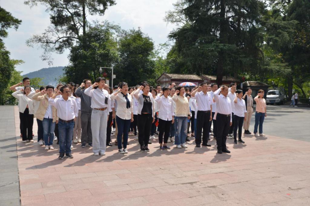 在庄严肃穆的纪念碑前,大家整齐列队,怀着崇敬的心情,向烈士们敬献了花篮,表达了对先烈们深深的哀思。在纪念碑下,全体党员庄严宣誓,重温入党誓言。