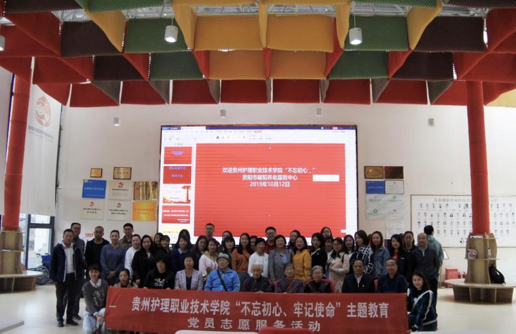 根据学院“不忘初心、牢记使命”主题教育相关工作安排,我院党委书记黄亚励,党委副书记、院长李俊华带队,携各部门临时负责人及全体党员于10月12日上午9点—11点集中开展主题党日活动,活动内容为贵阳市曜阳养老服务中心的老人们提供志愿者服务,其中包括:参观了解曜阳养老服务中心;与老人们互动交流谈心,聆听老人们的红歌联唱并互动指导;现场为服务中心护理人员及老人们讲解课程《压疮的预防与护理》。